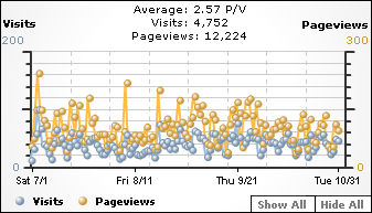 Tελικα το blog έφθασε αισίως τα 51 (μαζι με αυτο) posts. Σχεδόν ενα την εβδομάδα. Ειχε ανέλπιστα μεγάλη επισκεψιμότητα και ανταπόκριση. Για το τελευταίο εξάμηνο ειχε σχεδον σταθεροποιηθεί. Απο τον Ιουλιο εως τον Οκτώβρη οι επισκέψεις έφτασαν τις 4.752, μια μεση δηλαδή επισκεψιμότητα περίπου 1200 το μήνα με χαμηλότερο μήνα τον Αύγουστο (1.037 επισκέψεις) και ψηλότερο τον Οκτώβρη (1.295 επισκέψεις).