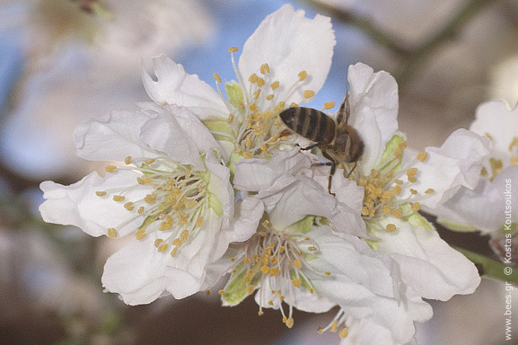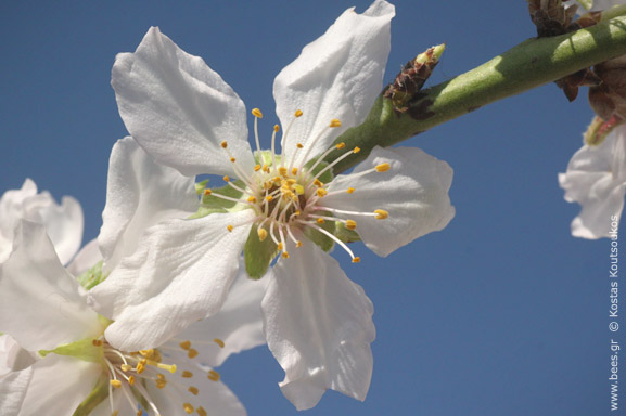 Η αμυγδαλιά Prunus amygdalus – Almond tree είναι απο τα πιό χρήσιμα μελισσοκομικά φυτά. Είναι η πρώτη σοβαρή ανθοφορία (ακολουθεί η κορομηλιά). Υπάρχουν αρκετές ποικιλίες, με απόσταση στην άνθιση, με αποτέλεσμα η γκάμα να περιλαμβάνει από το Φεβρουάριο ως τον Μάρτιο. Το πρόβλημα είναι οτι αφενός δεν υπάρχουν τεραστίων διαστάσεων μονοκαλλιέργειες αμυγδαλιάς στην Ελλάδα, αφετέρου οι καιρικές συνθήκες την περίοδο της άνθησης δεν είναι πάντα κατάλληλες για να την επισκεφτούν οι μέλισσες.